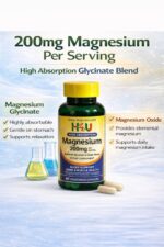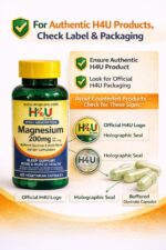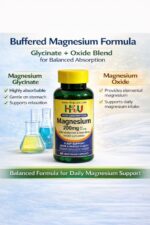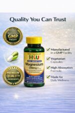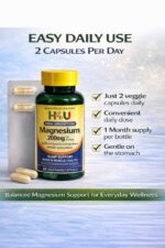 H4U Magnesium 200 mg Capsules – Buffered Magnesium Glycinate & Oxide Blend Support your daily wellness routine with H4U Magnesium 200 mg Capsules, a carefully formulated magnesium supplement designed to help provide essential magnesium for overall health. Each serving delivers 200 mg of magnesium from a buffered blend of magnesium glycinate and magnesium oxide, helping support daily magnesium intake in convenient vegetarian capsules. Magnesium is an important mineral involved in many normal body functions. It plays a role in muscle function, bone health, and nervous system support, making it an important part of a balanced lifestyle. Each bottle contains 60 vegetarian capsules, providing a 30-day supply when taken as directed. The easy-to-swallow capsules are designed for daily use and can be taken with food as part of your regular supplement routine.